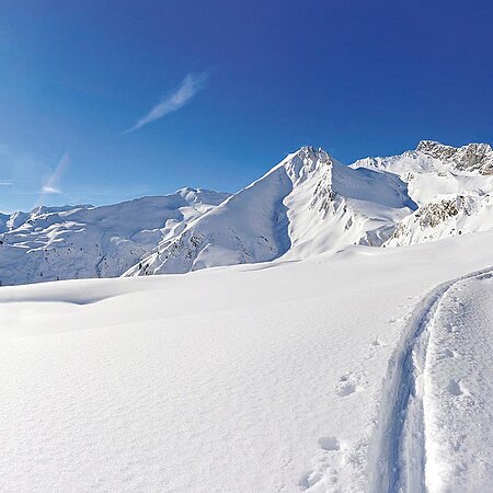 Die Berge rund um Hintertux zeigen sich im Winter von einer besonders stillen Seite: verschneite Hänge, tief eingeschnittene Bäche und weite Flächen im Tuxer Talboden laden dazu ein, die Skier einmal im Skikeller zu lassen und mit Schneeschuhen loszuziehen. Rund 68 Kilometer Winterwanderwege erschließen im Tuxertal eine Landschaft, die man Schritt für Schritt und im eigenen Tempo erleben kann.